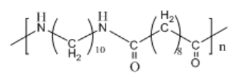 英文名:Polyamide1010 or Nylon1010,簡稱PA1010或尼龍1010,又稱聚酰胺1010,即聚葵二酰葵二胺。分子結構式: