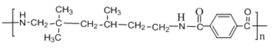 英文名:Semi-aromatic nylon,又稱無定形聚酰胺,化學名稱為:聚對苯二甲酰三甲基己二胺。其分子結構式為: