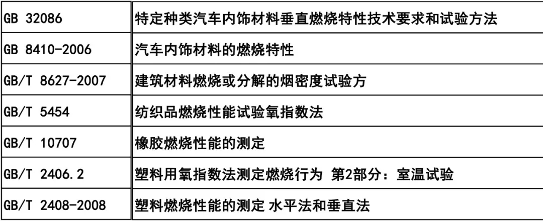汽車內飾材料燃燒性能常用標準